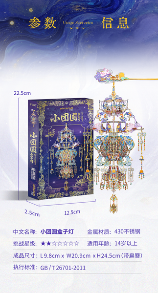 Mô Hình Kim Loại 3D Lắp Ráp Piececool Lồng Đèn Tiểu Đoàn Viên - Hạp Tử Đăng (100 mảnh, Little Reunions Box Lantern) F005-BS – MP1339