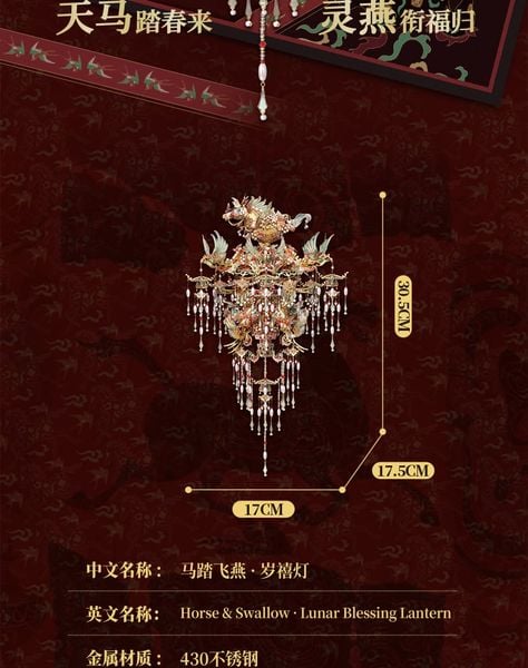 Mô Hình Kim Loại 3D Lắp Ráp Piececool Mã Đạp Phi Yến - Lồng Đèn Tết Nguyên Đán (1007 mảnh, Lunar Blessing Lantern) P459-GN – MP1335