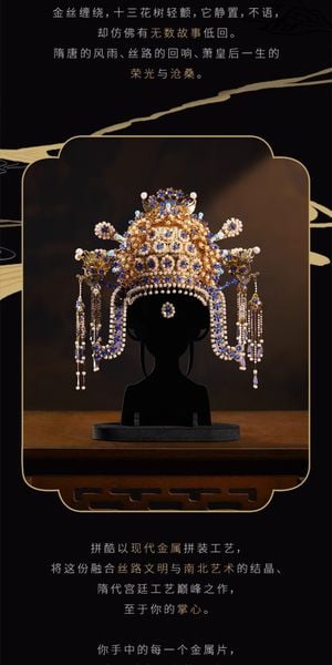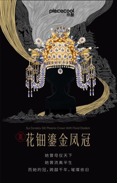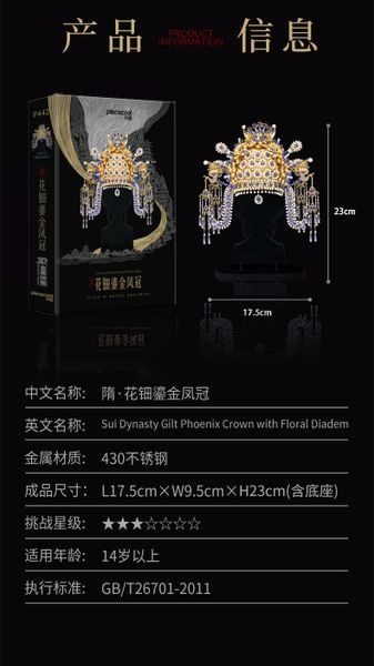 Mô Hình Kim Loại 3D Lắp Ráp Piececool Tùy Hoa Điền Lưu Kim Phượng Quan (1366 mảnh, Sui Dynasty Gilt Phoenix Crown with Floral Diadem) P442-GB – MP1323